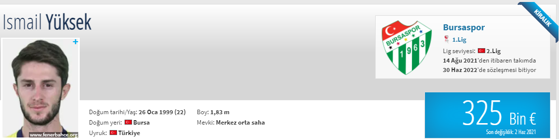 Geçtiğimiz sezon Gölcükspor'dan transfer ettiğimiz İsmail Yüksek'i ilk devrede Balıkesirspor'a, ikinci devrede Adana Demirspor'a kiralamıştık. Bu sezon ise, Bursaspor'a kiraladık.